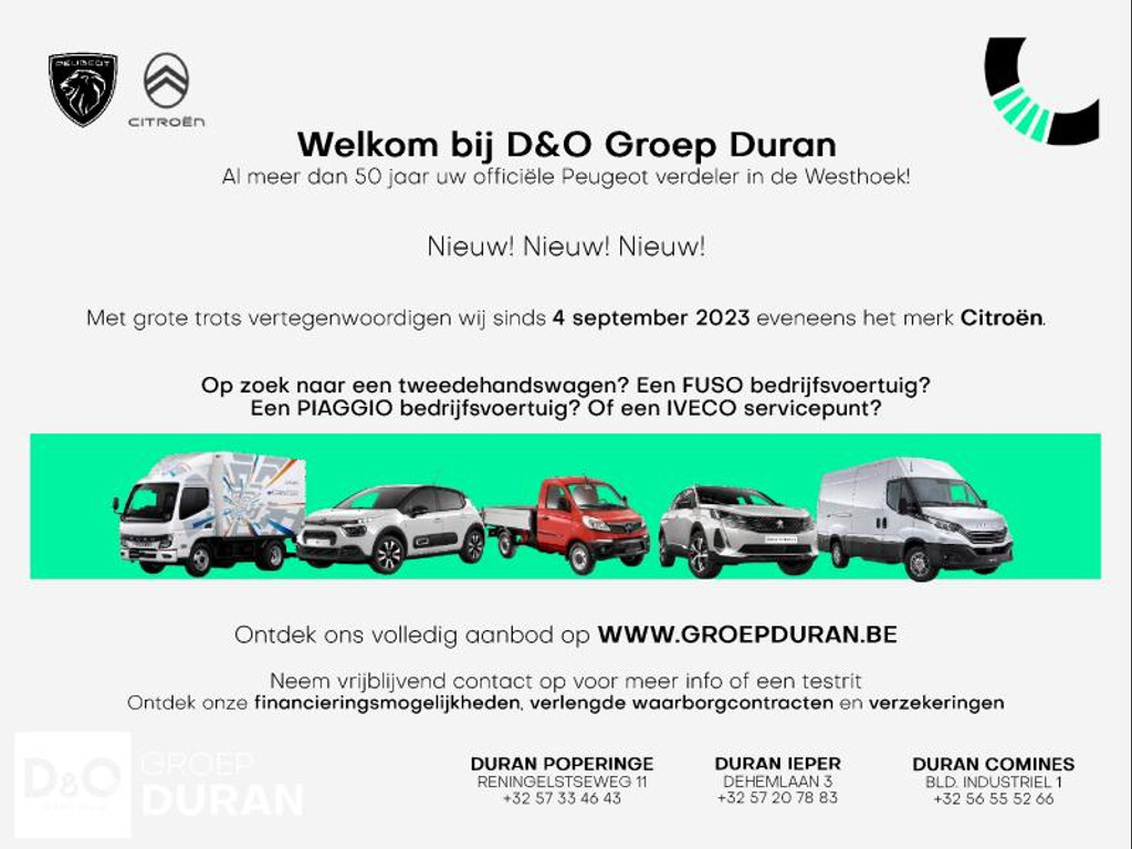 Dehemlaan 5, 8900 Ieper T +32 (0) 57 42 15 23 info@duranmotors.be